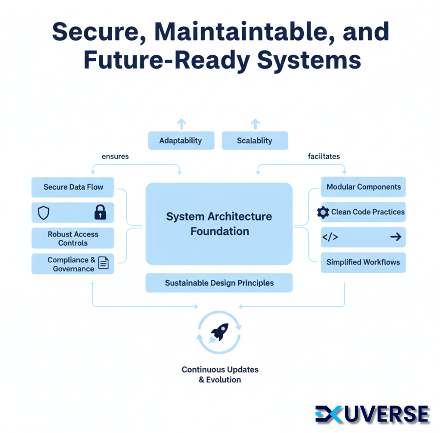 Future-ready software systems are easy to maintain, integrate with third-party services and upgrade with emerging technologies, ensuring long-term business continuity.