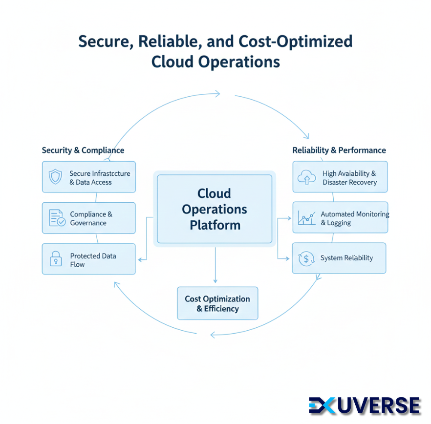 Cost-optimized cloud strategies ensure efficient resource utilization while maintaining enterprise-grade security and compliance standards.